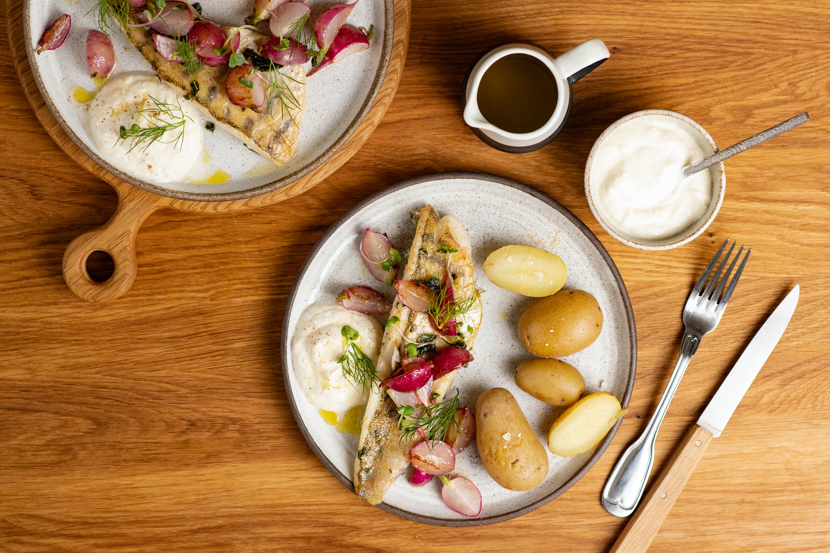 Hotového candáta doručujeme podávat s křenovým dipem a vařenými bramborami.
