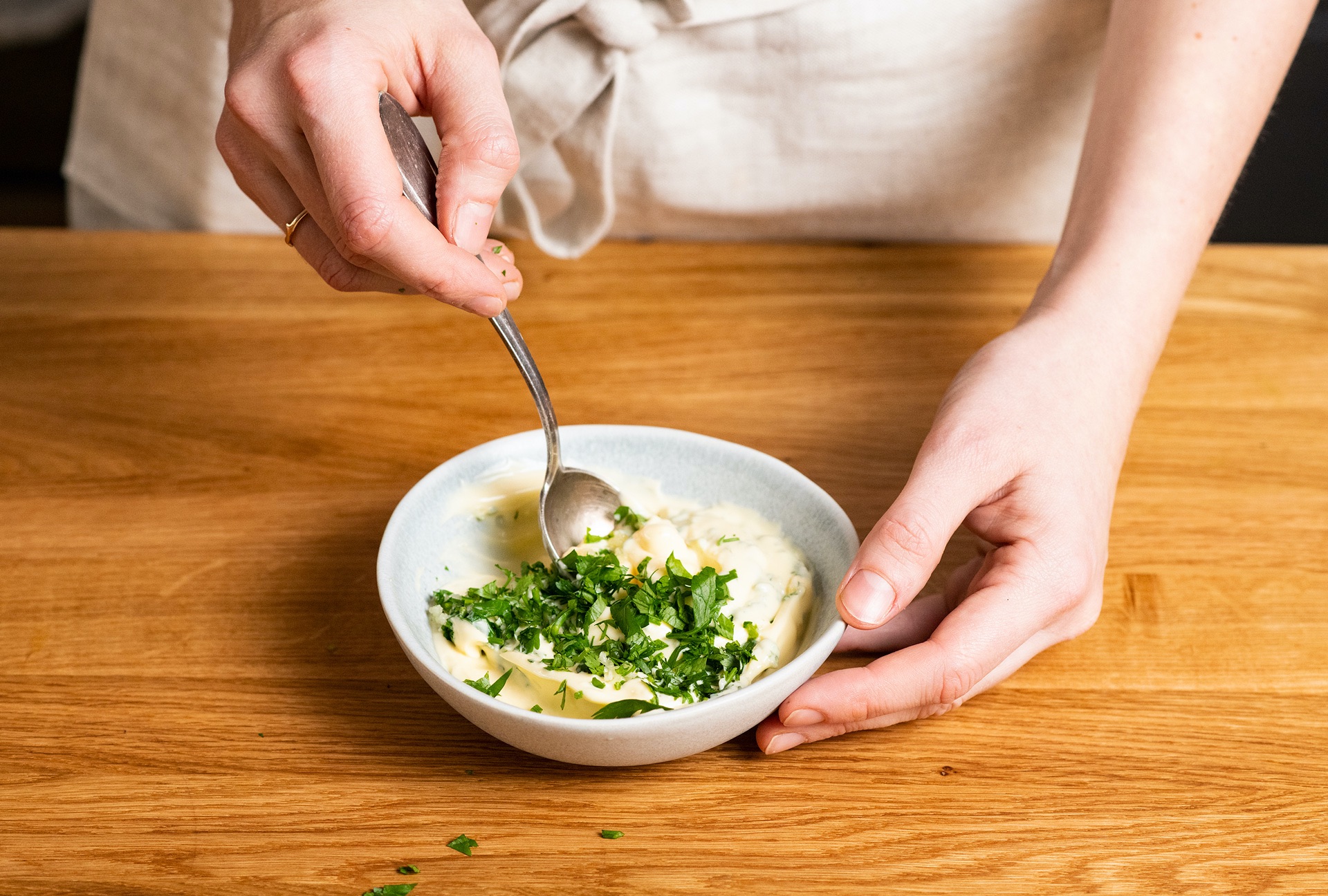 Na majonézu je třeba mít žloutky i olej stejné teploty. Vejce si tak vyndejte předem z lednice, aby měla pokojovou teplotu. Jinak by se nemusely ingredience hladce spojit.
