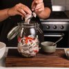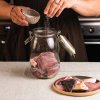 Druhý den připravte nálev č. 1. Vše svařte v rendlíku a nechte vychladnout. Kousky kapra omyjte vodou, abyste se zbavili soli, následně je přesuňte do sklenice, zalijte připraveným nálevem a uzavřete. Vraťte do lednice a nechte odležet 4 dny.