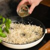 Jakmile bude rýže téměř hotová, stáhněte plamen a přidejte k ní pesto, baby špenát, parmazán a máslo. Všechno dobře promíchejte do krémové konzistence.
