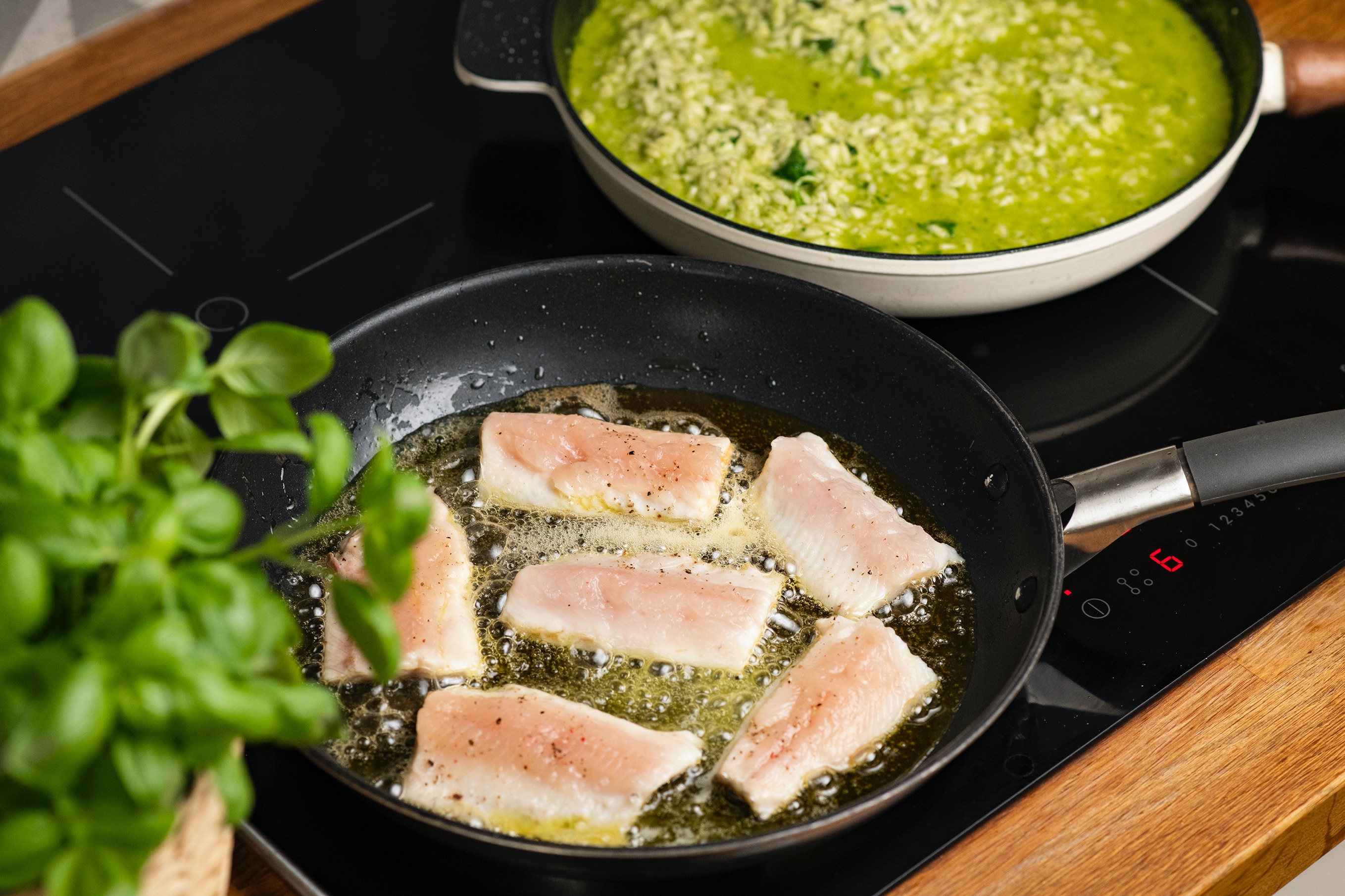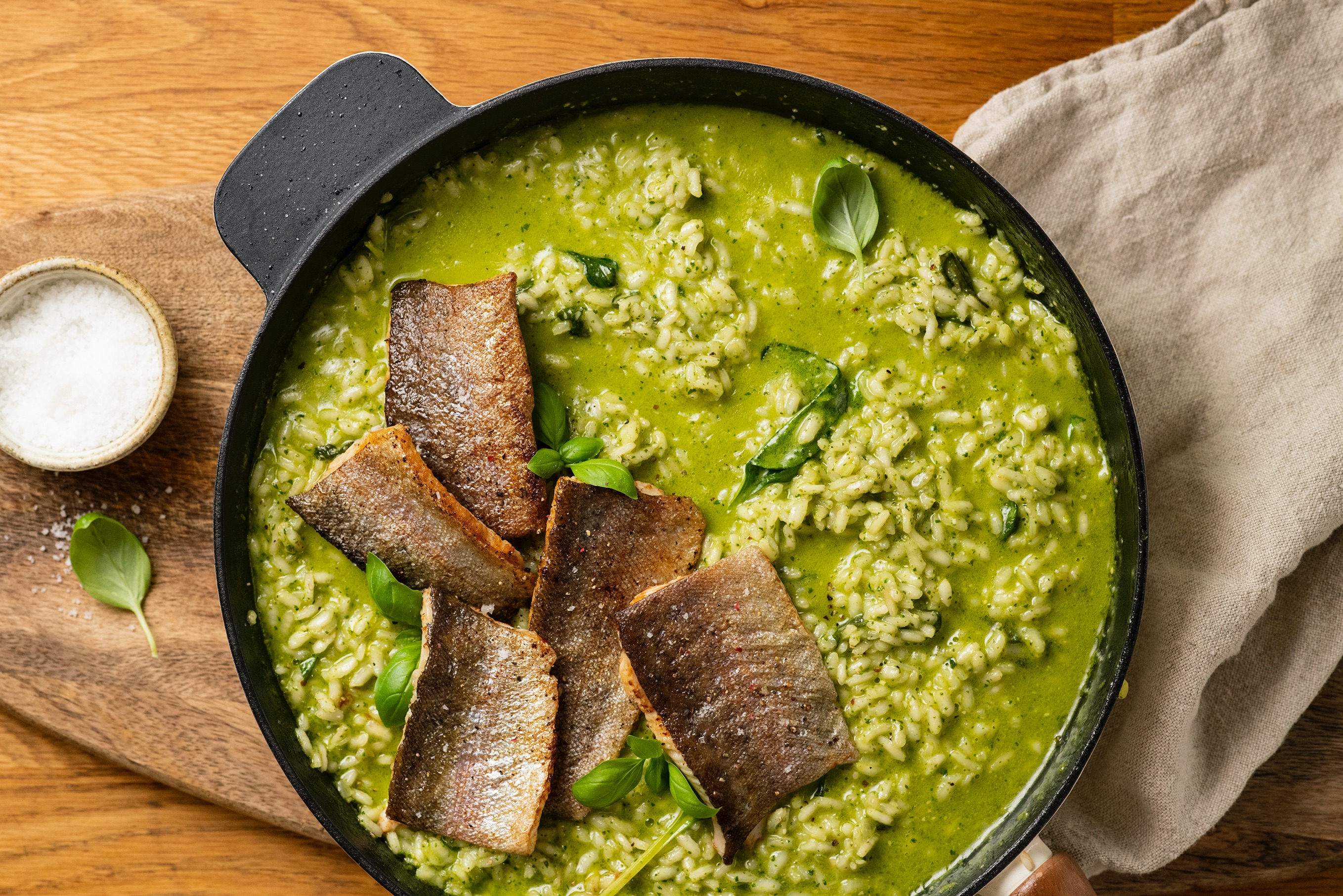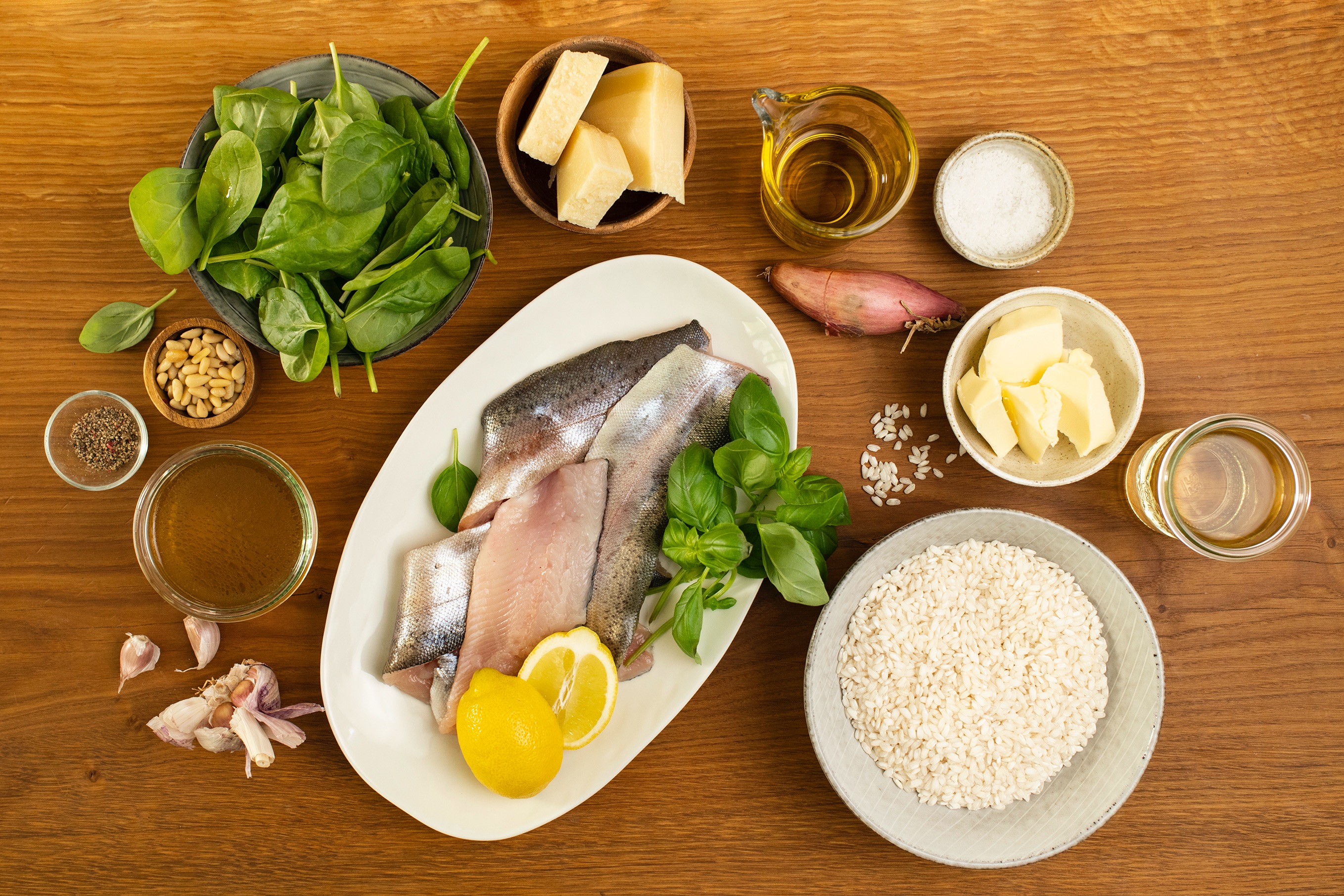 ŠPENÁTOVÉ RIZOTO S FILETEM PSTRUHA
