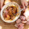 Filet nakrájejte na středně velké kostky o velikosti asi 5x5 cm a naložte je do marinády.